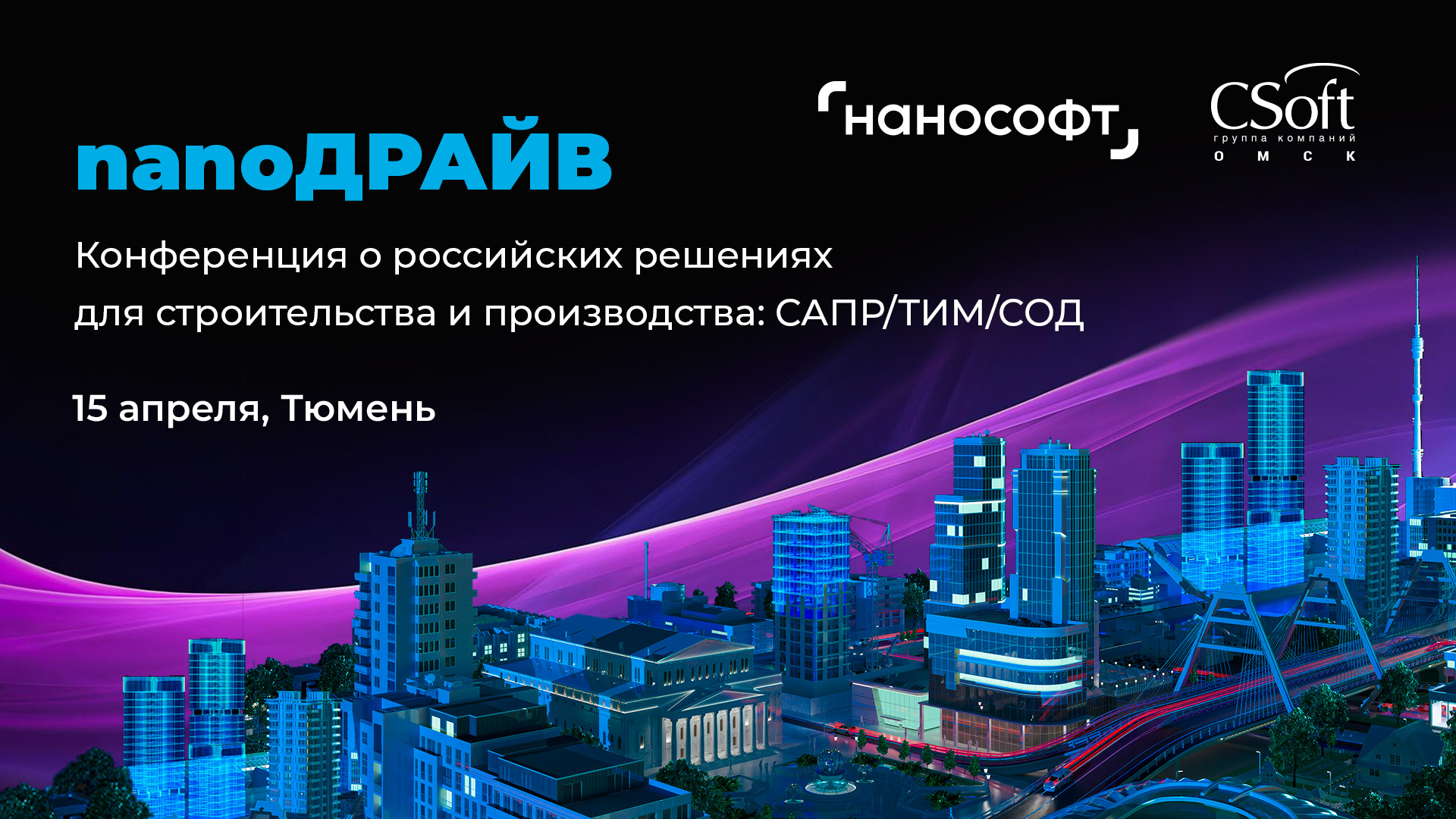 15 апреля в Тюмени пройдет nanoДРАЙВ – бесплатная конференция, посвященная инновациям в сфере проектирования, цифровизации и создания инженерных экосистем для строительства и производства.