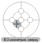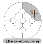На схеме ниже показано расположение вершин ортогональных видов на локаторе. Вершины соединяются ребрами промежуточных видов. Зоны изометрических видов расположены между этими ребрами (на схеме – светло-серые секторы).