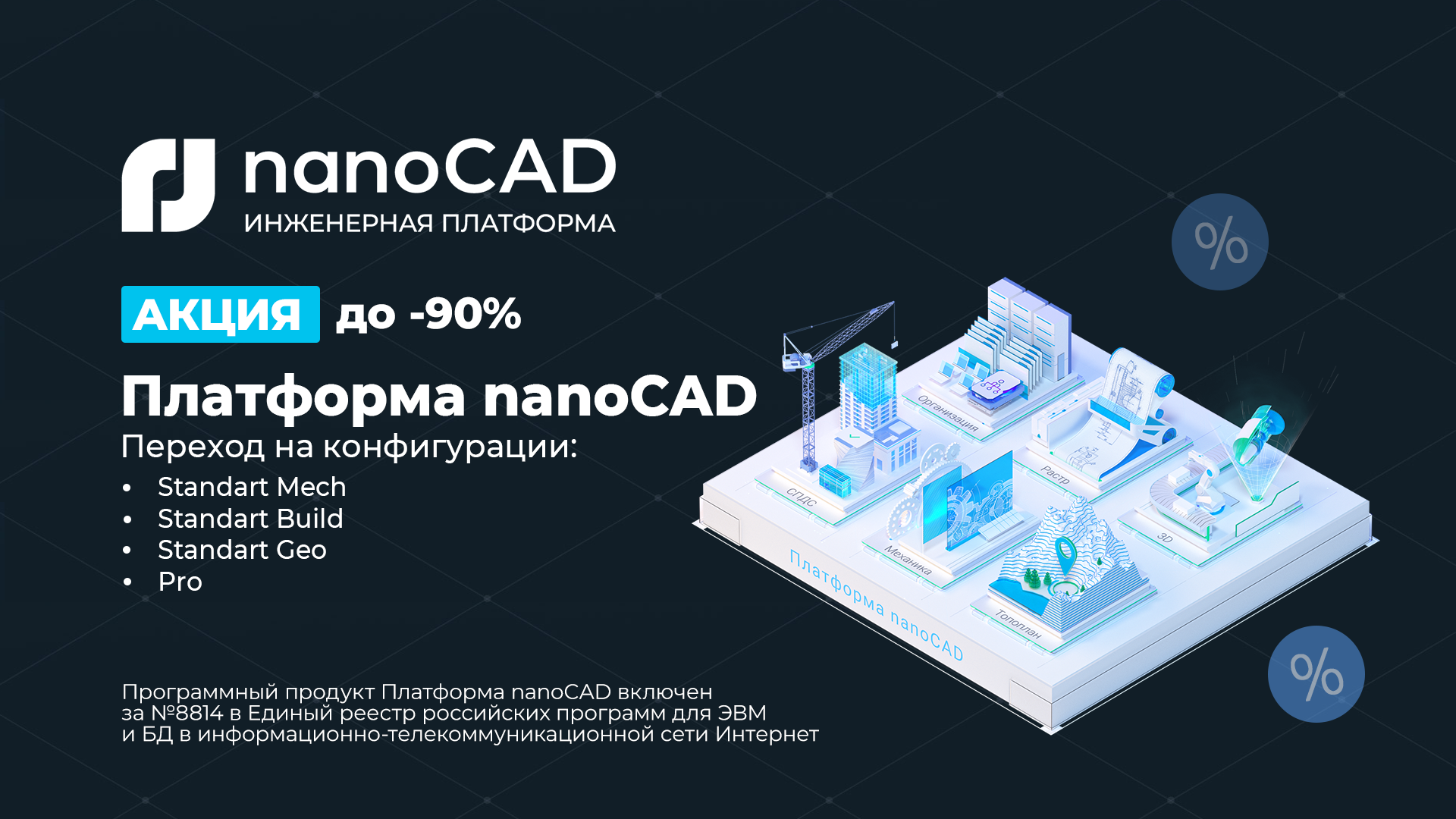 Скидка до 90% на перевод постоянных лицензий Платформы nanoCAD с модулями в конфигурацию Pro
