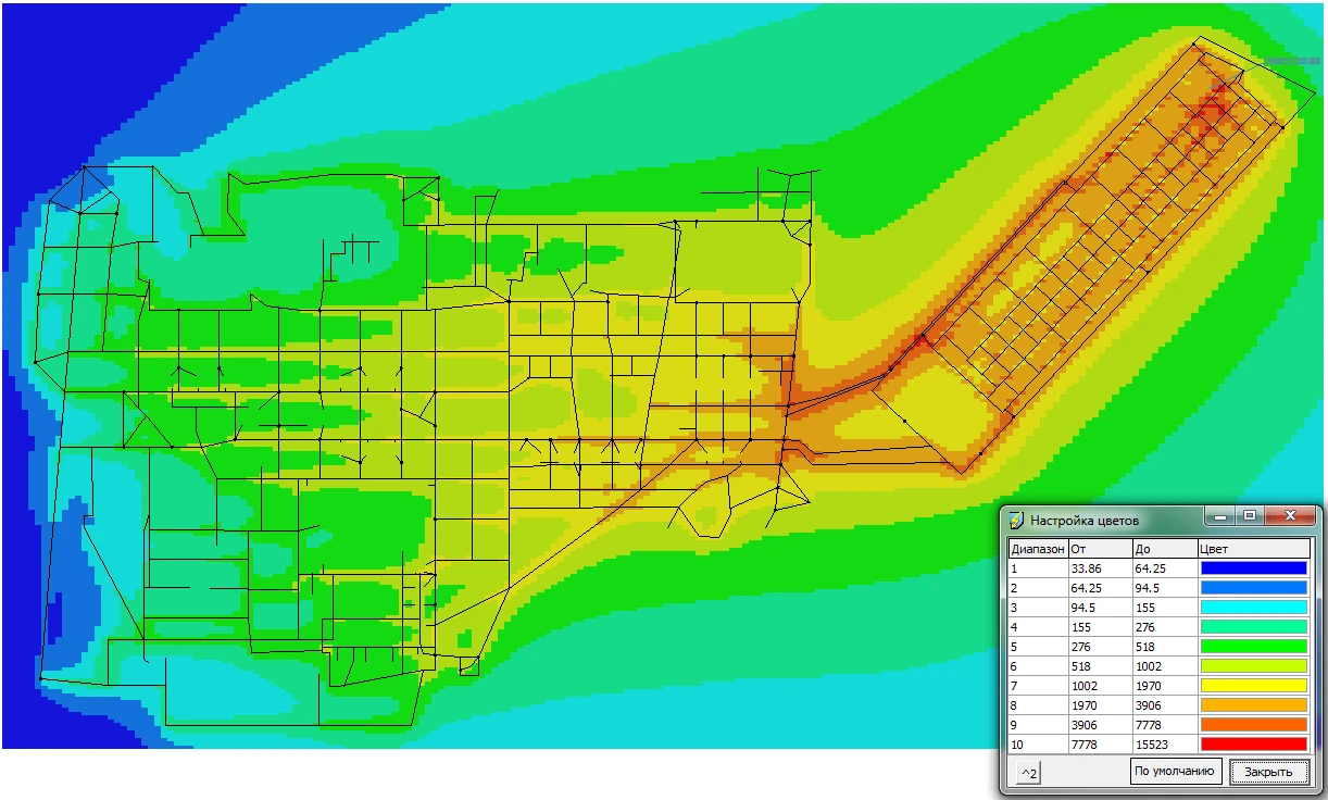 возможность производить горизонтальные сечения зон на любой высоте (по умолчанию — на высоте сооружения с максимальной высотой);