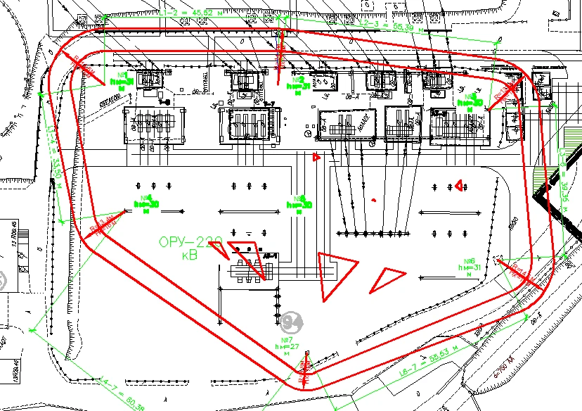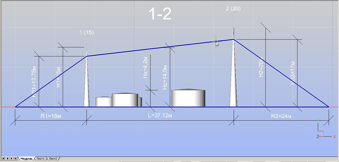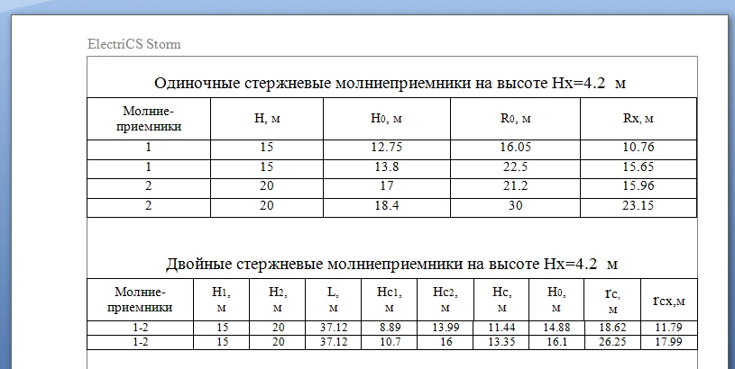 Подсистема РМЗ обеспечивает расчет многократных стержневых и/или тросовых молниеотводов. Результаты расчетов выводятся в виде табличных документов MS Word.