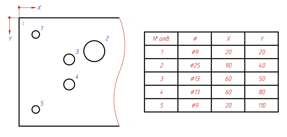 В инструменте таблицы отверстий добавлена возможность построения левой системы координат отверстий.