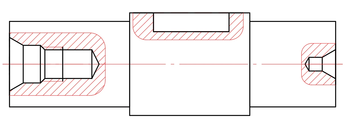 Команда «Местный разрез» позволяет автоматически получать изображения элементов базы типа шпоночных пазов и центровых отверстий на валах. На деталях передач и фланцах этой командой можно делать полуразрезы. На днищах и обечайках с местными разрезами можно показывать их толщину.