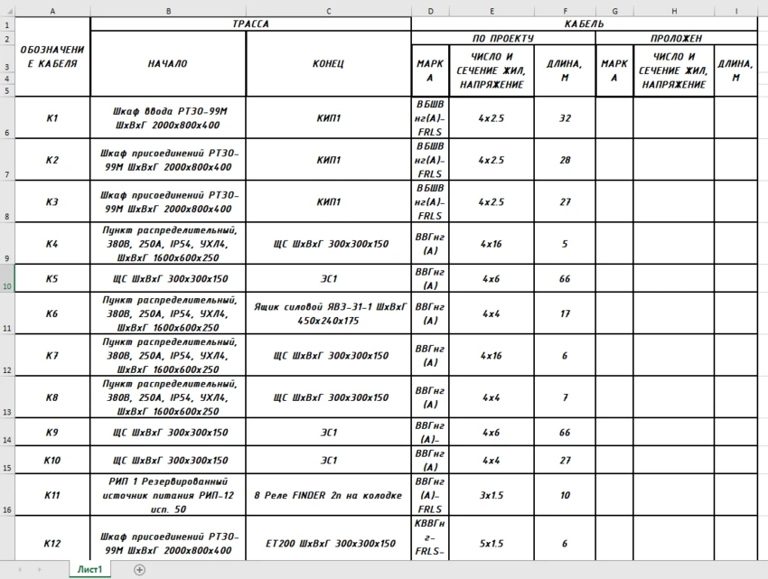 Раскладка кабелей