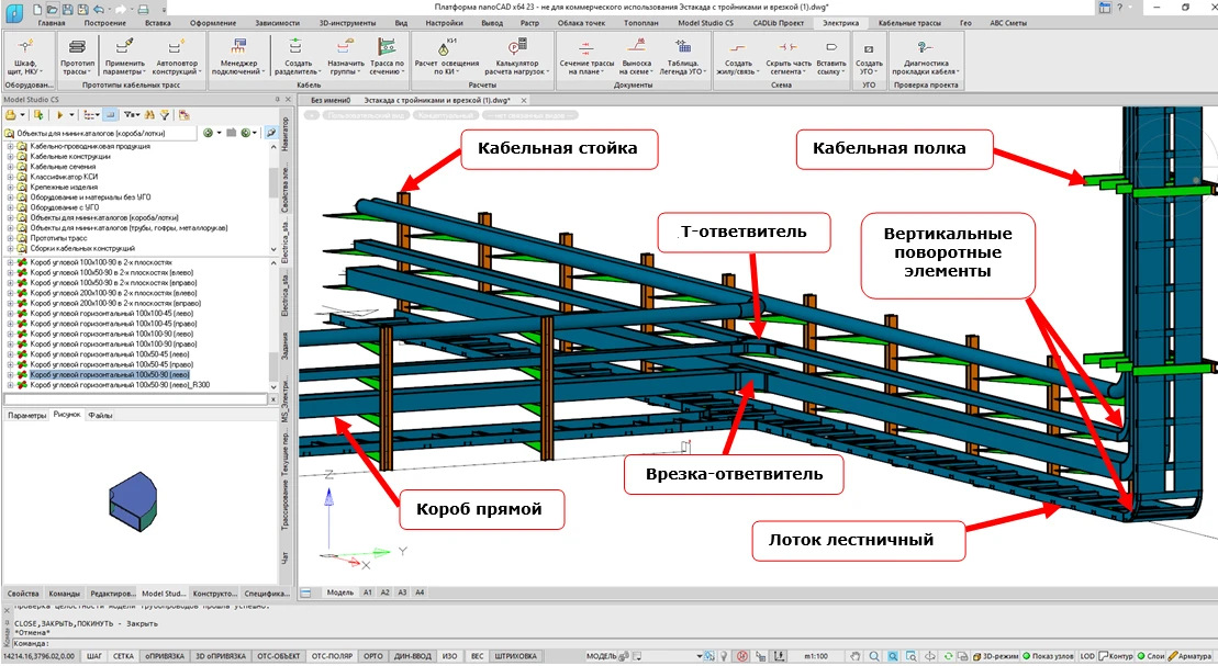 Программное обеспечение Model Studio CS Электрика имеет достаточно полную базу УГО для прорисовки схем электрических принципиальных в соответствии с ГОСТ, элементов оборудования для размещения в 3D-модели и дальнейшего получения планов расположения электрооборудования. Функционал программы обеспечивает генерацию планов кабельных трасс и сечений по кабеленесущим конструкциям, позволяя осуществлять …