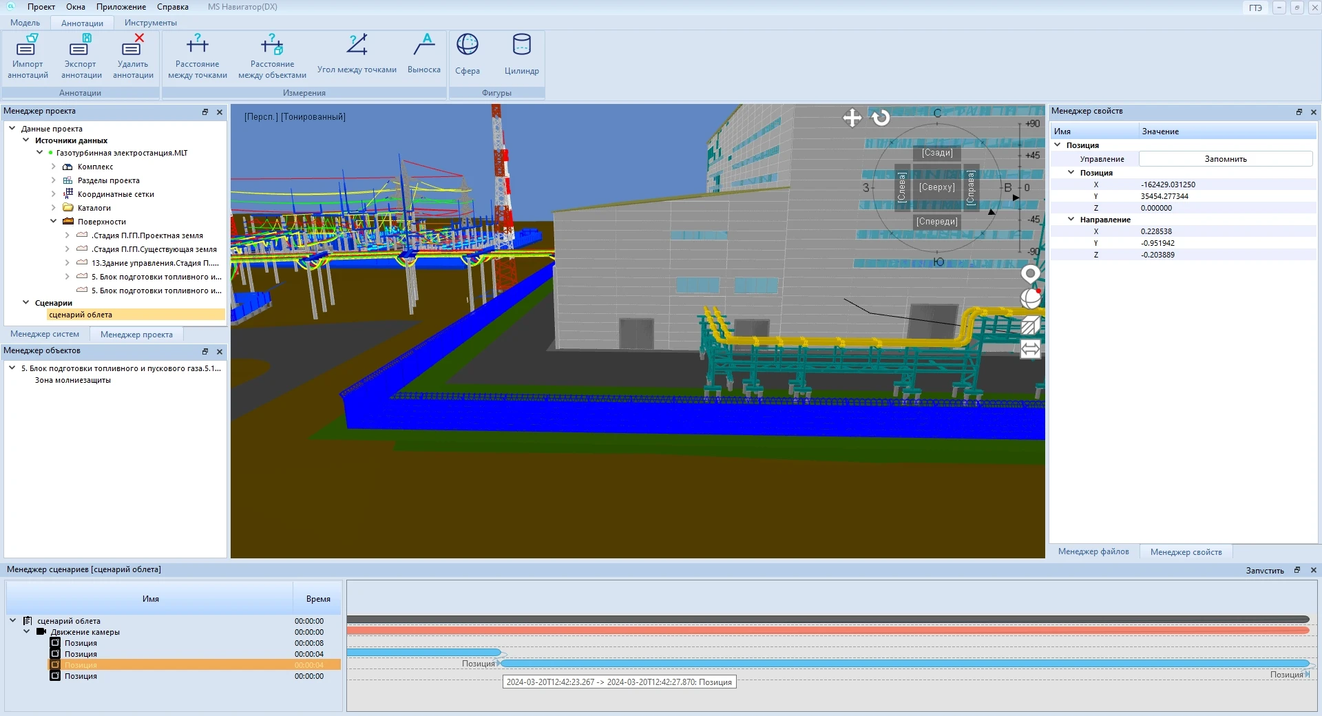 MS Навигатор также позволяет получать презентационные материалы в виде реалистичных изображений и видеороликов, а также сохранять сценарии облета модели.