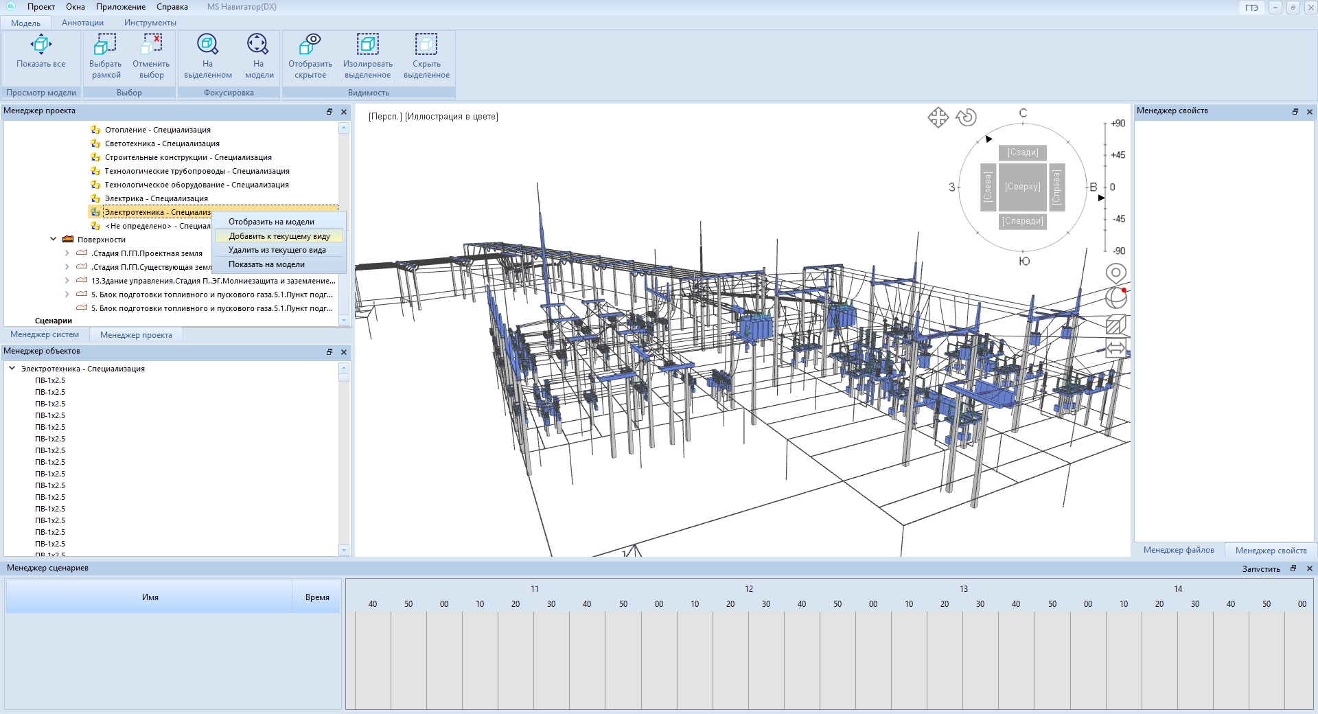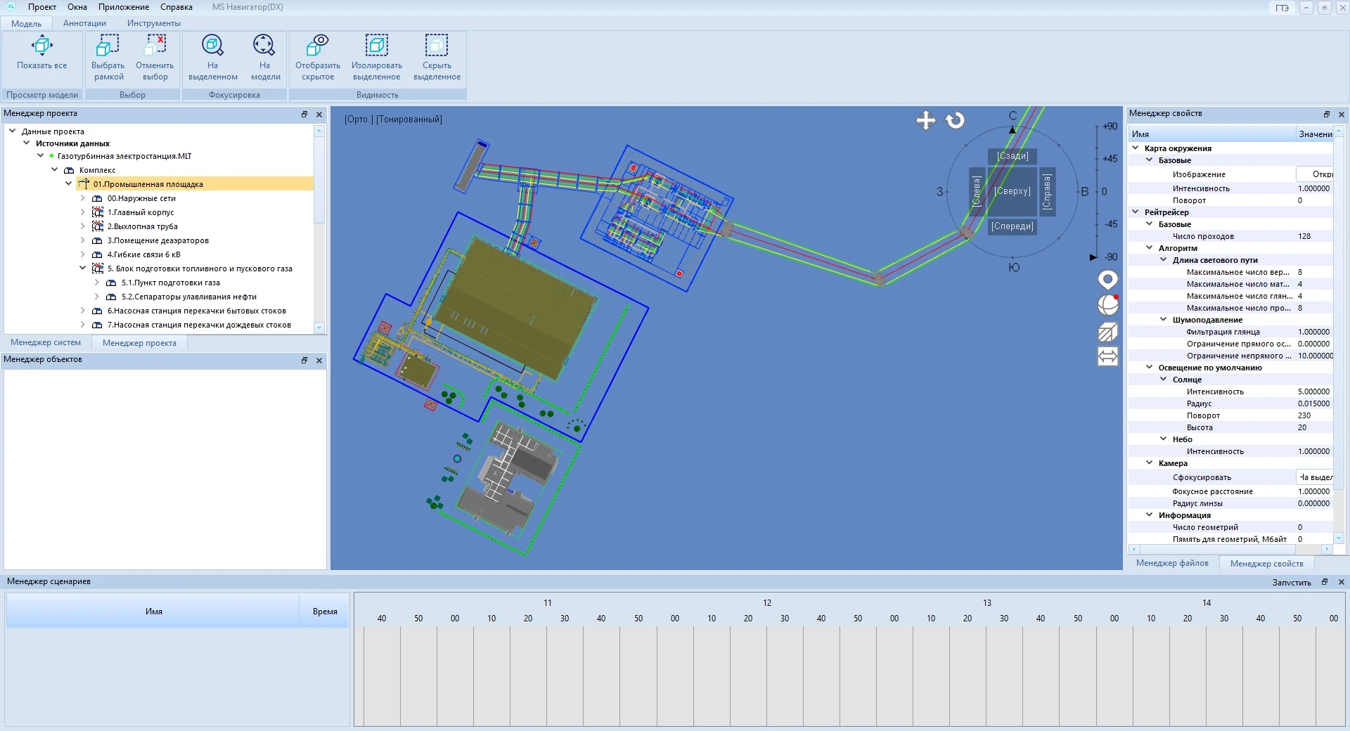 В файл MLT сохраняется информация о 3D-объектах и их атрибутах, данные об иерархиях Комплекс и Разделы проекта, пользовательские выборки и классификаторы, а также файлы, связанные с 3D-объектами. Просмотр 3D-объектов происходит таким же образом, как в MS Модель и архив: в программе можно показывать и скрывать объекты, связанные с определенными уровнями структуры.
