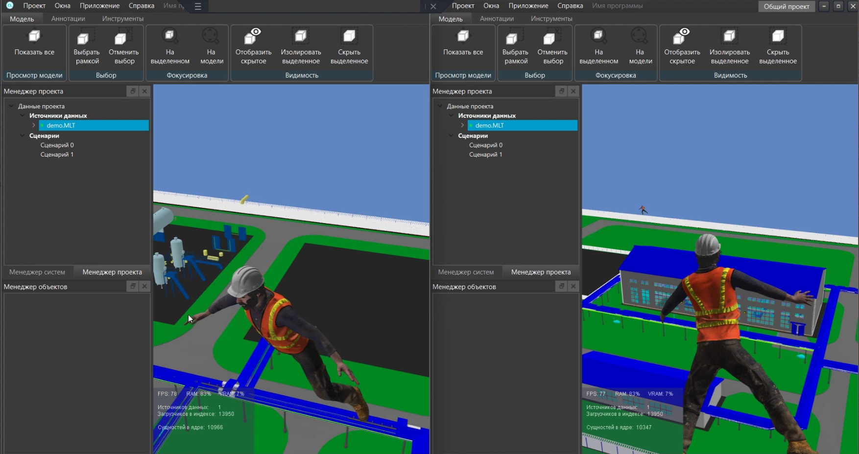 MS Навигатор позволяет исследовать проект одновременно нескольким пользователям в режиме просмотра от третьего лица.