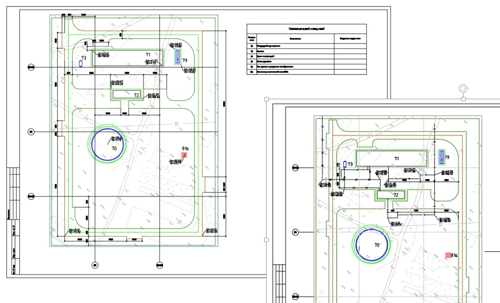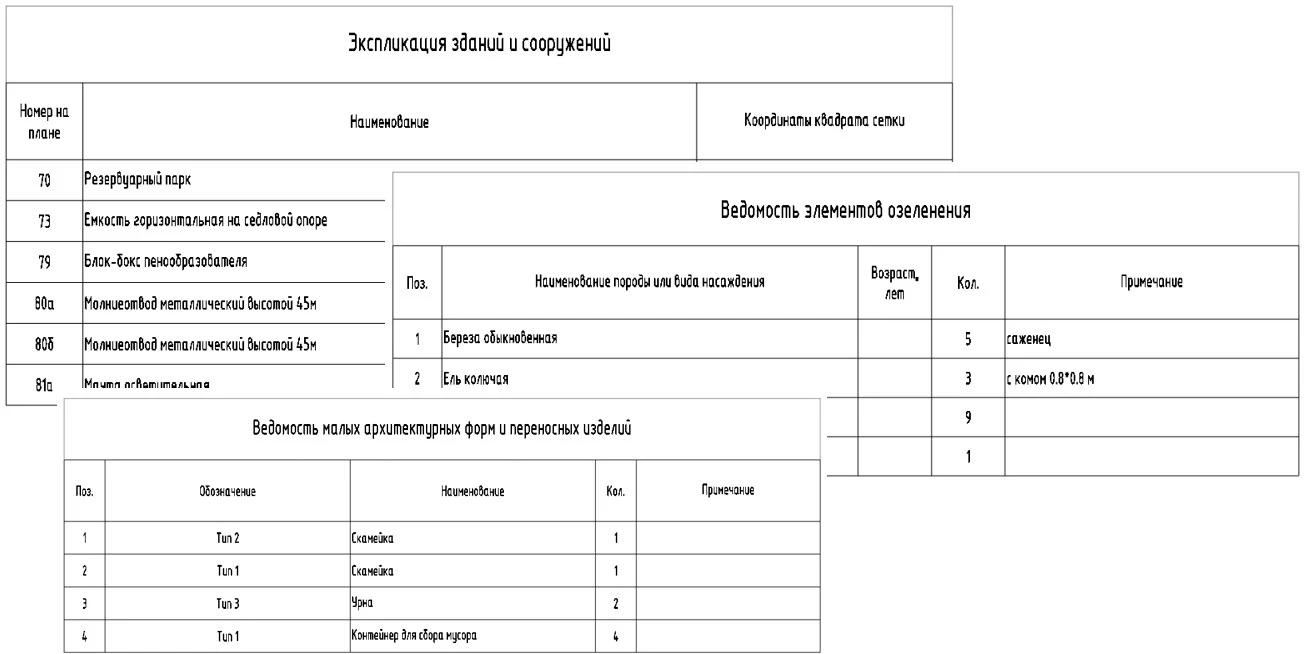 Посадку на генплан зданий и сооружений можно осуществить несколькими способами: вставить из библиотеки изделий и материалов, отобразить из базы данных проекта CADLib Модель и Архив или создать контуры сооружений специальной командой. Также на генплане расставляются элементы благоустройства и озеленения. По объектам, размещенным на генплане, можно автоматически получить ведомости и спецификации в с…