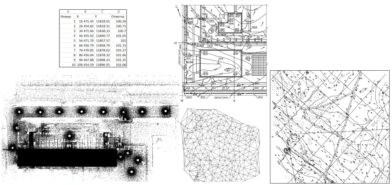 полученные от геодезистов текстовые файлы с точками, имеющими координаты X, Y, Z;