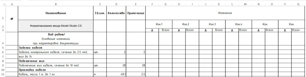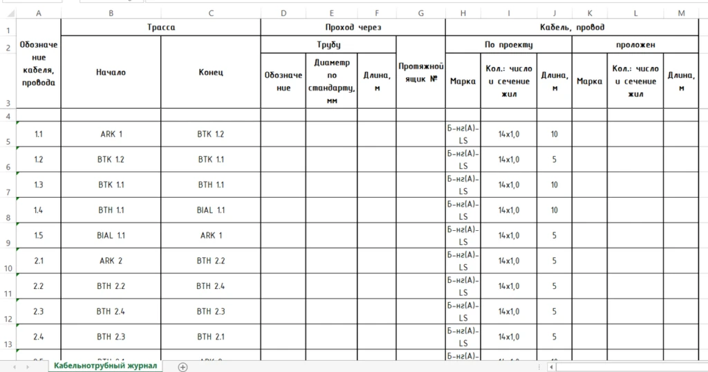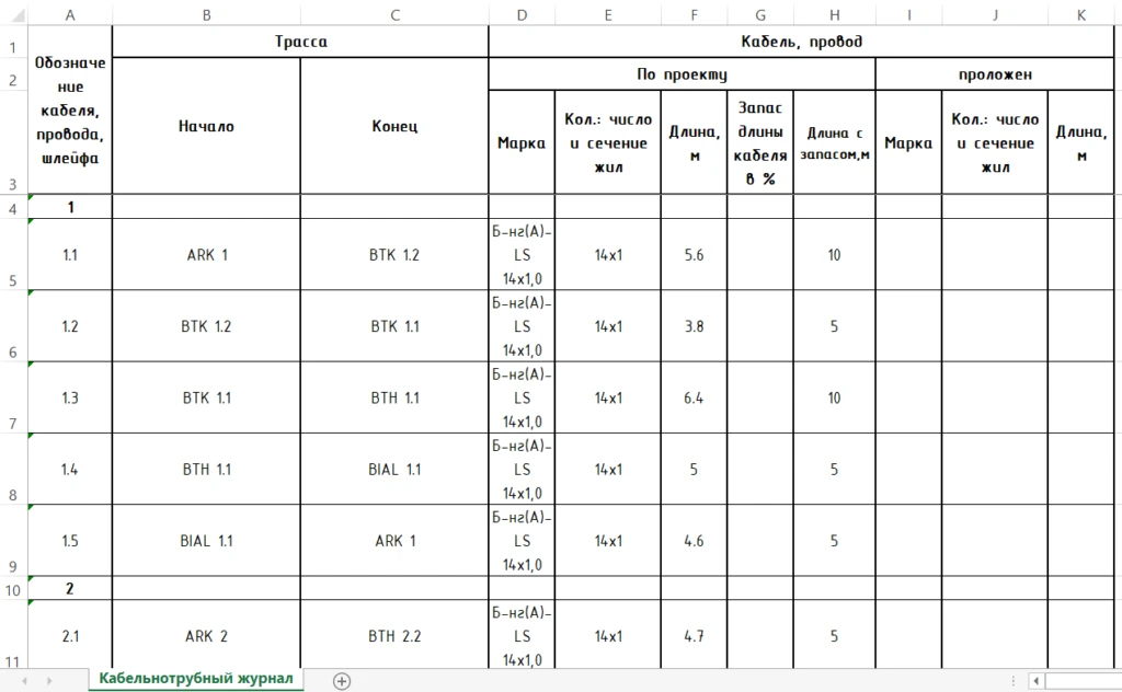 Формирование и выпуск полного комплекта табличной документации по кабельной раскладке — с рамками, штампами, эмблемами и т.п. (в форматах MS Word, MS Excel, nanoCAD/AutoCAD).