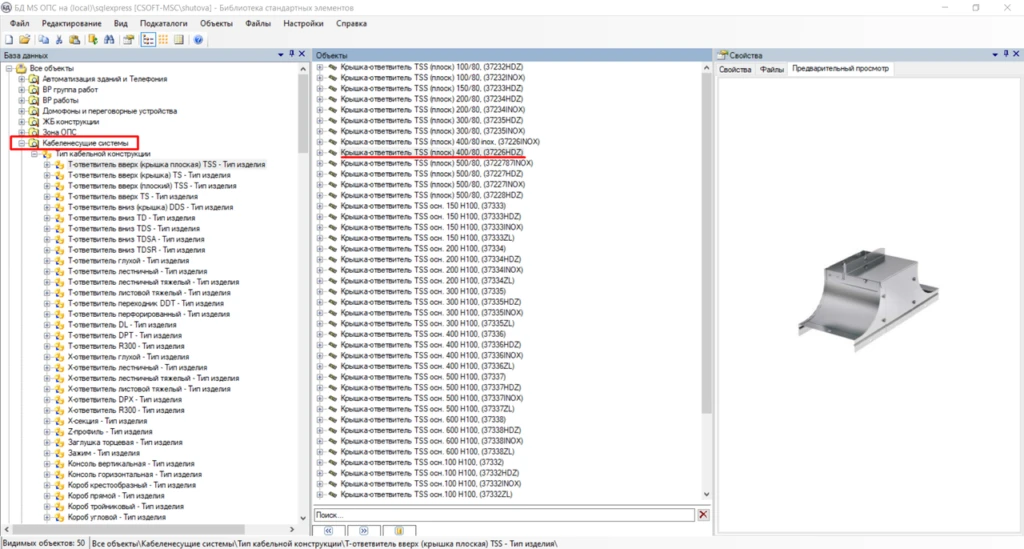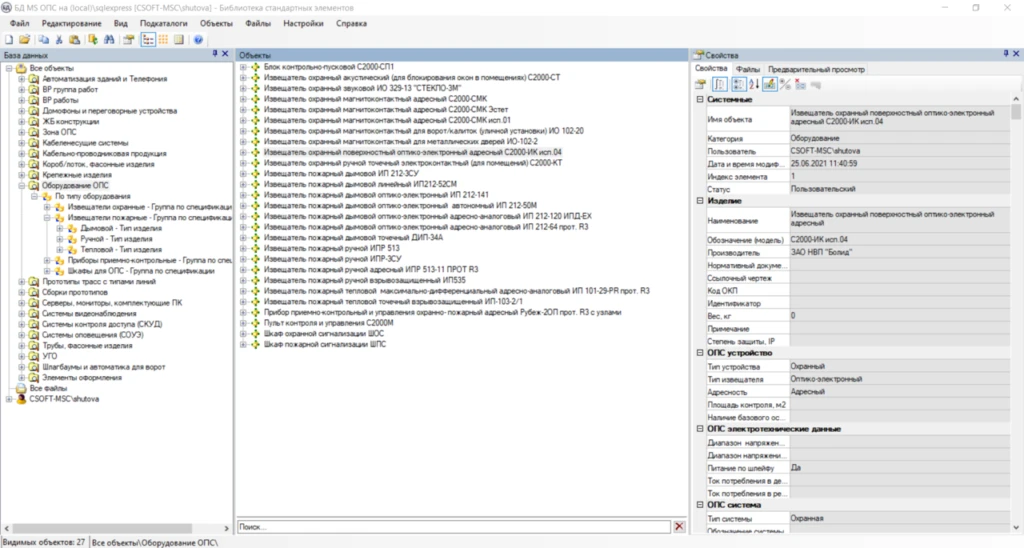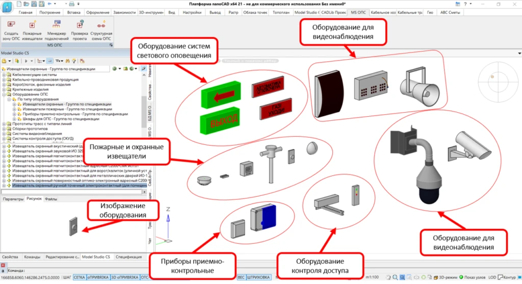 База данных программы Model Studio CS ОПС включает в себя информацию по специализированному оборудованию, изделиям и материалам, применяемым для выполнения трехмерной модели систем охранно-пожарной сигнализации и кабельной раскладки. Данные об объектах базы хранятся в CADLib — Менеджере библиотек стандартных компонентов для линейки программ Model Studio CS, в основу которого положена СУБД Microsof…