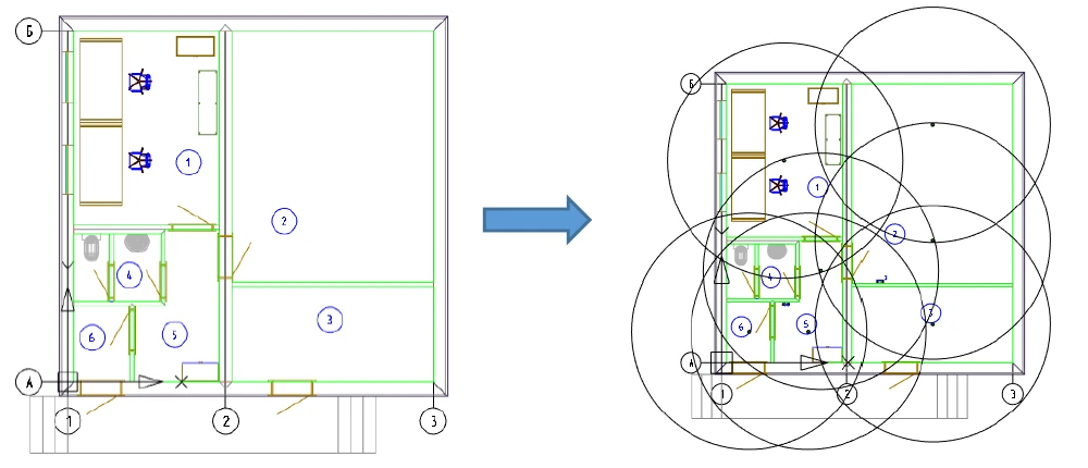 Функционал программы позволяет выполнять проверку ручной расстановки пожарных извещателей в зонах ОПС на соответствие требованиям СП 484.1311500.2020, а именно проверки количества извещателей в определенной зоне и расстояния друг от друга и от стен в зоне ОПС. При нарушении условий проверки создается объект «Коллизия». Этот функционал поможет отследить и предотвратить возможные ошибки при проектир…
