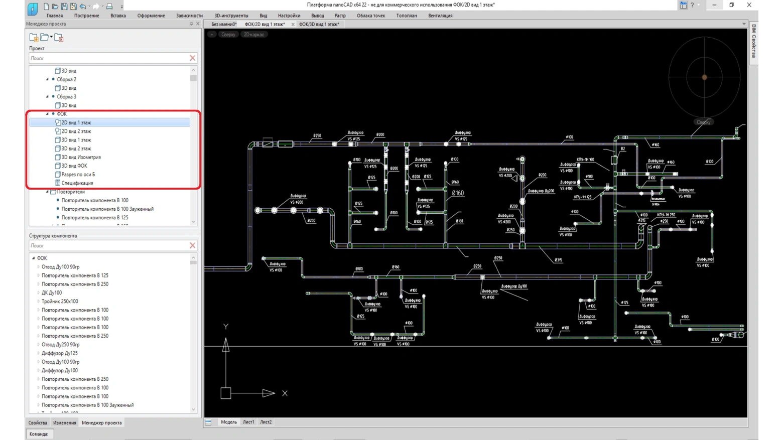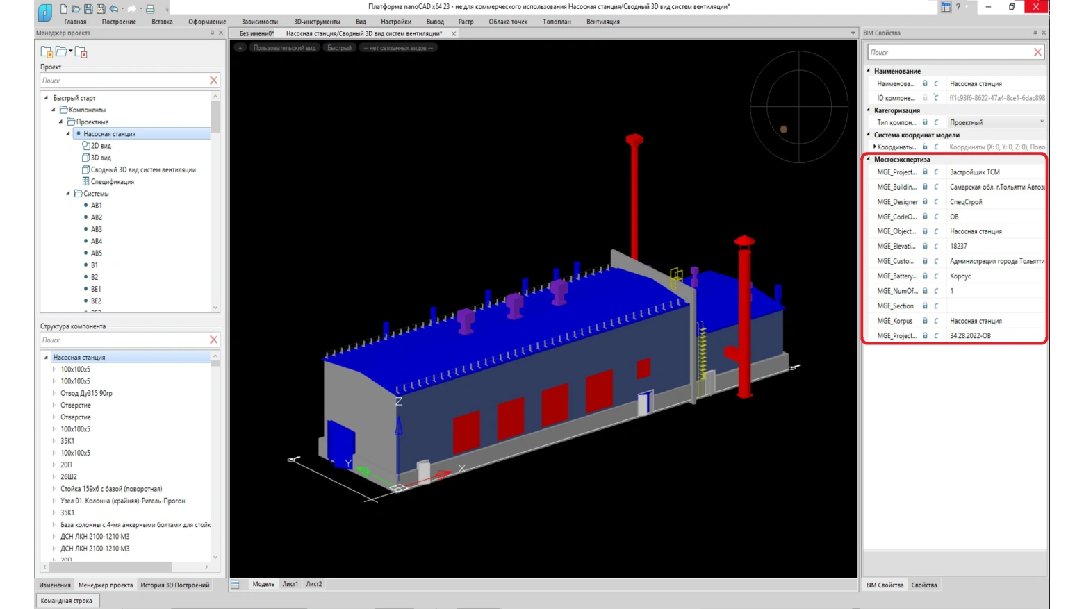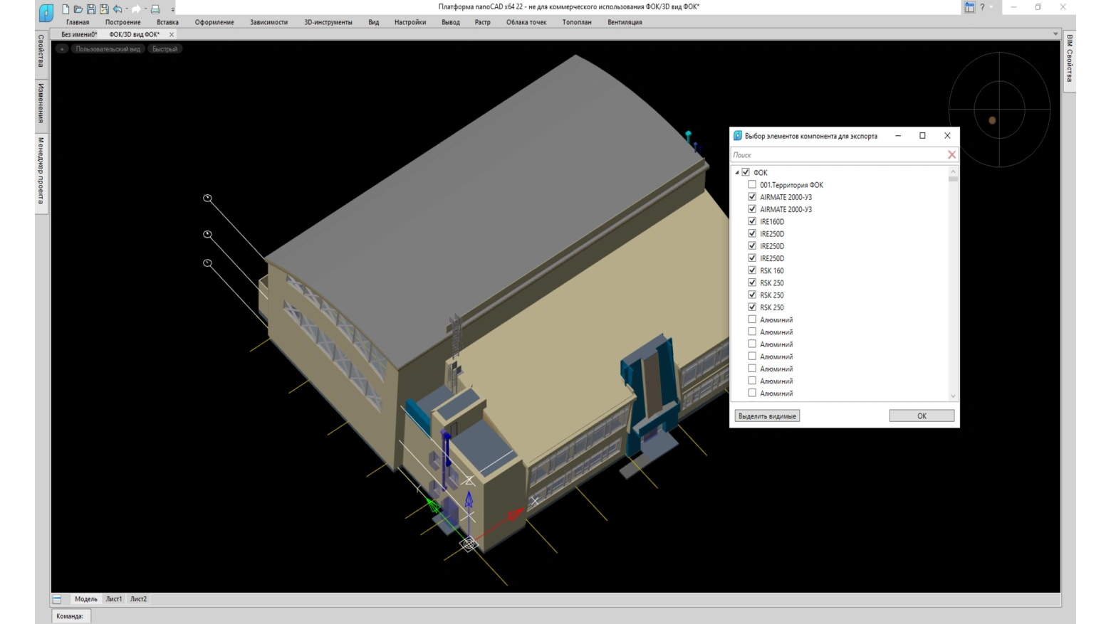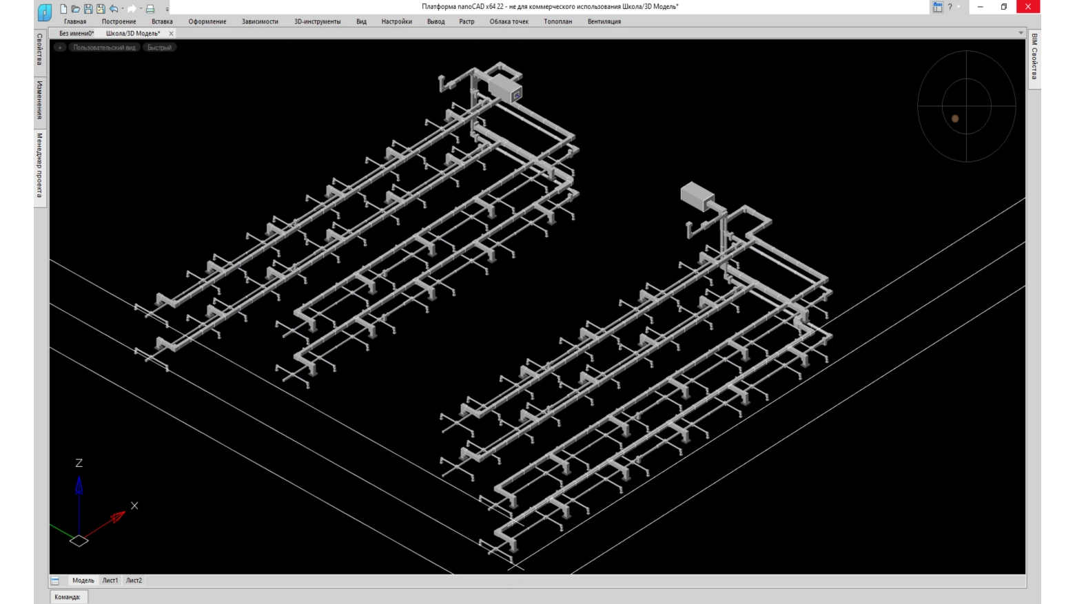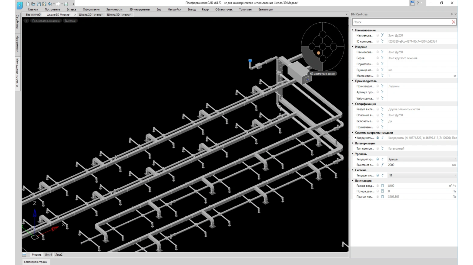 nanoCAD BIM Вентиляция - Программный продукт предназначен для автоматизированного проектирования и информационного моделирования систем вентиляции и кондиционирования зданий и сооружений.