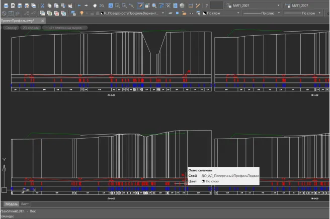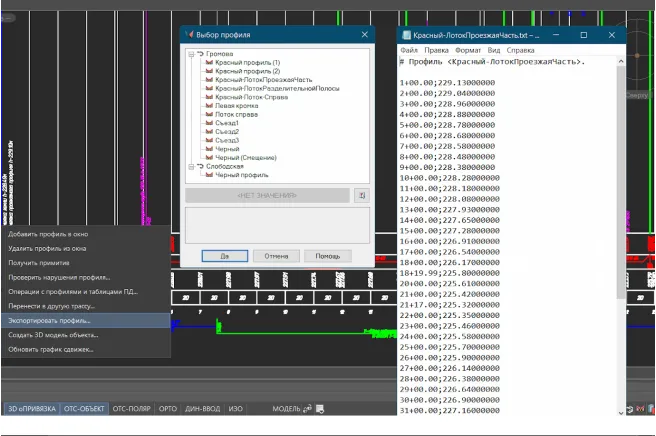 Экспорт данных профиля, создание 3D-моделей трасс, рисование по профилю с помощью прозрачных команд и оформление профилей (с помощью сбросов).