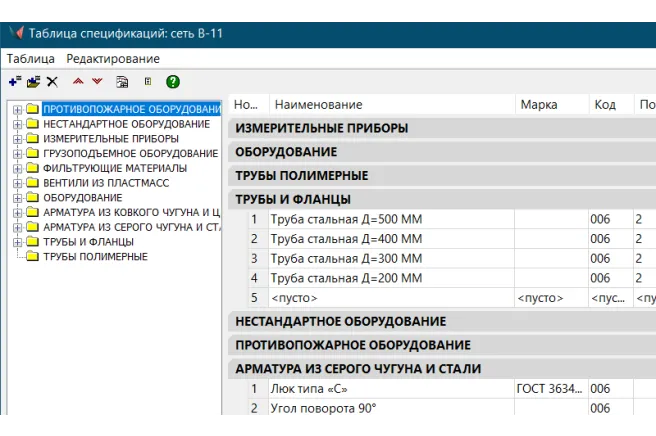 Инженерные коммуникации представлены в виде специального 3D-объекта «Сеть». Действуют встроенные правила отрисовки сетей с гибкой настройкой параметров и открытыми БД нормативно-справочной информации по сетям и элементам сети.