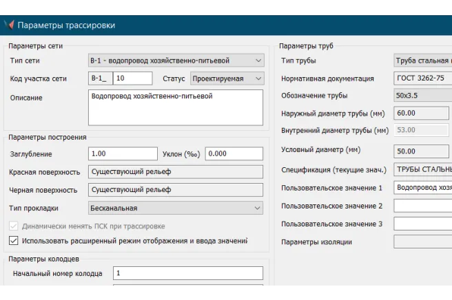 Вариантность режимов трассировки сети. Широкие возможности редактирования параметров сети в плане и в профиле.