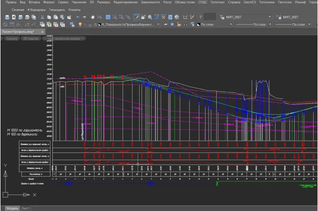 Проектирование линейно-протяженных объектов с подготовкой плана, профиля и поперечных сечений.