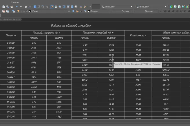 Определение объемов земляных работ и материалов по проектному очертанию. Источник: поверхности и специальные фигуры, заданные в элементах конструкций.