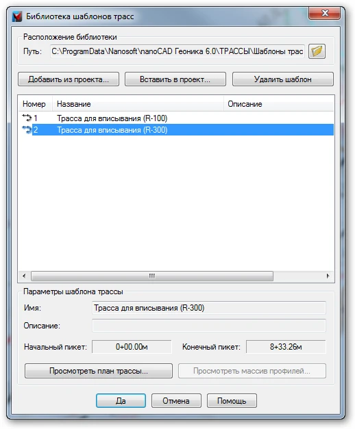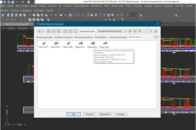 Специальный шаблон «Конструкции» позволяет проектировать очертания линейного объекта (например, дороги) по существующим поперечным профилям.