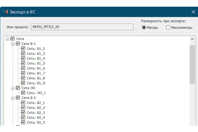 Экспорт свойств сети в MS Excel, экспорт инженерных коммуникаций в формат IFC.