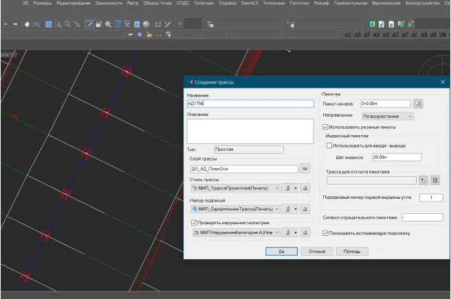 «Трасса» – специализированный трехмерный объект, хранящийся в проекте. Создание линейно-протяженных объектов в плане производится различными методами: геометрическими элементами, по 3D-полилинии, по объектам.