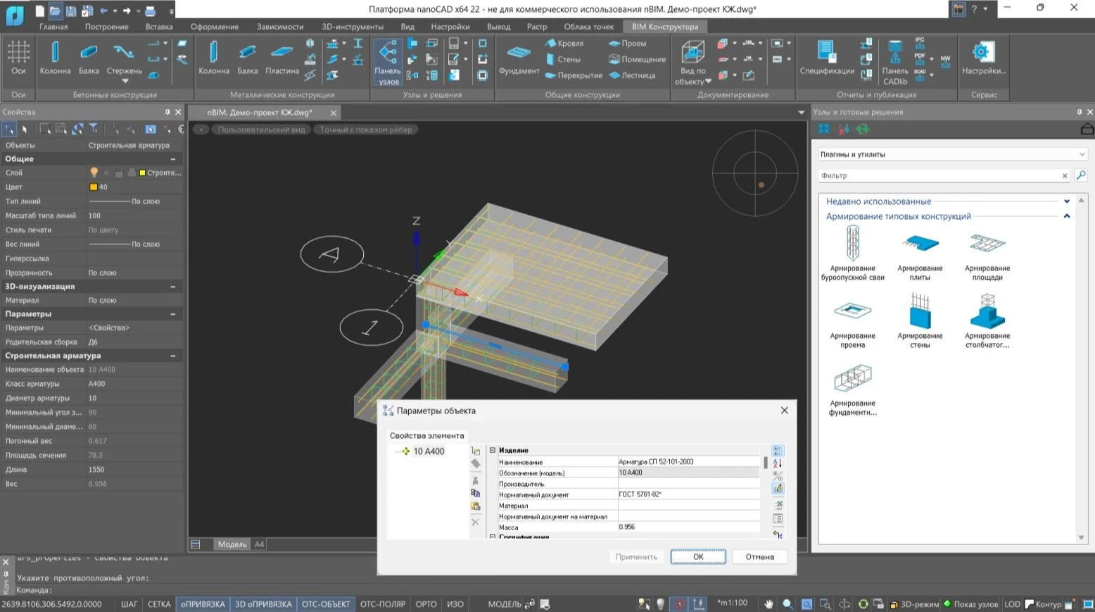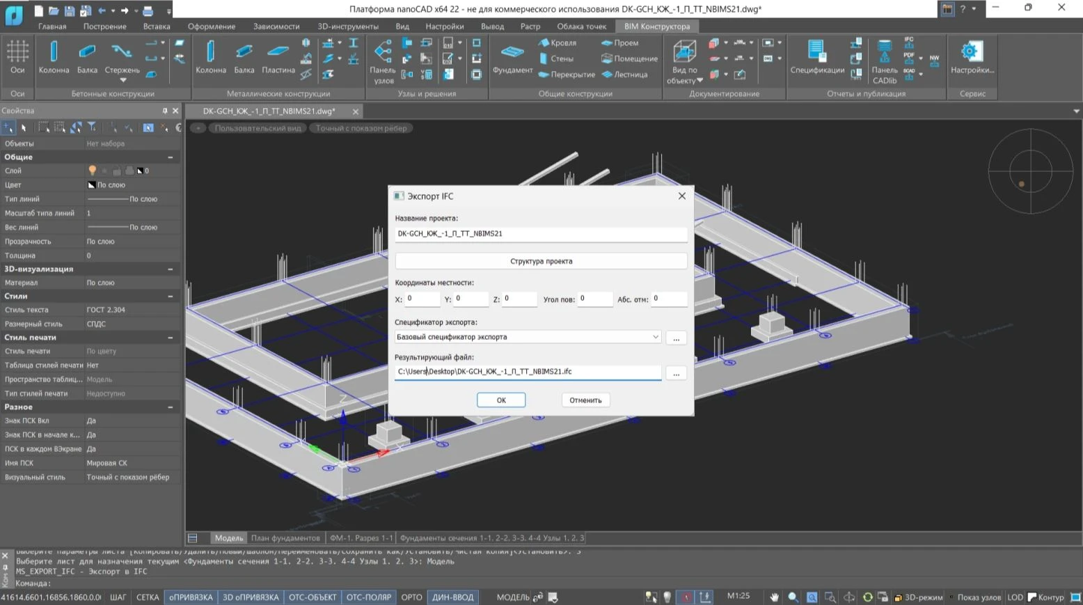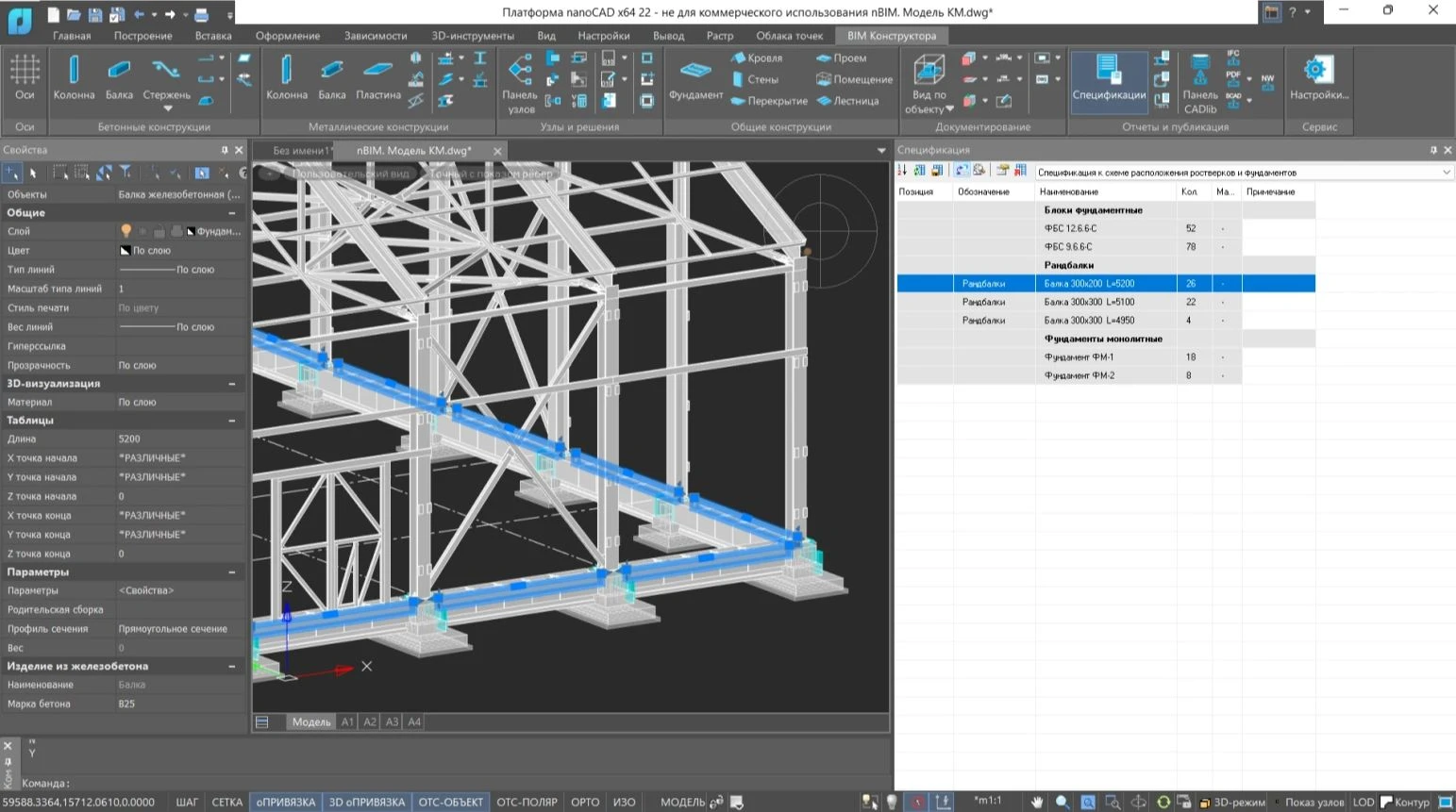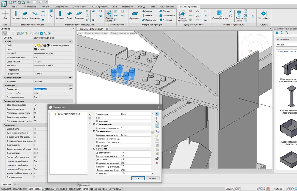 nanoCAD BIM Конструкции предназначен для проектирования металлических и бетонных конструкций зданий/сооружений на принципах информационного моделирования (Building Information Modeling).