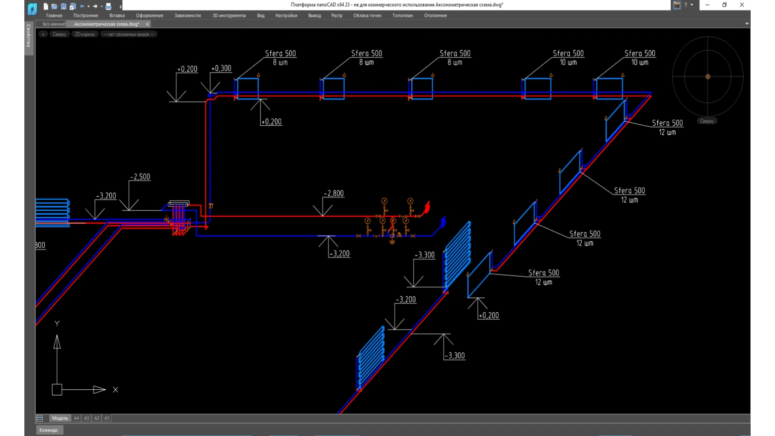 Программный продукт nanoCAD BIM Отопление включает в себя специализированные инструменты инженера-проектировщика отопительных систем. Из создаваемой модели систем отопления пользователь получает практически всю необходимую документацию: