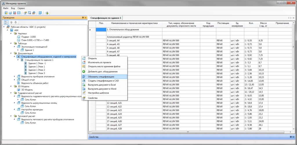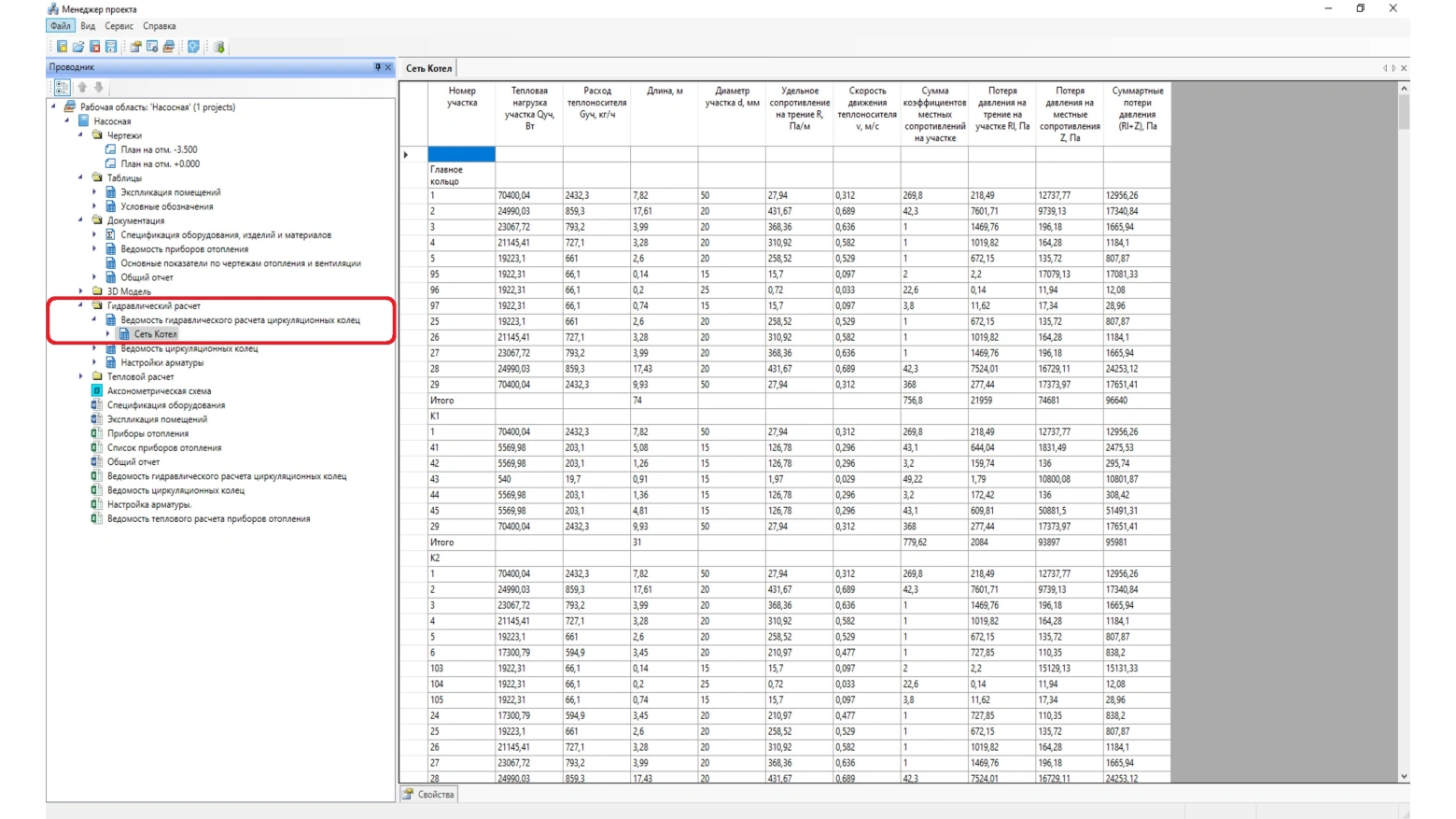 Формирование широкого перечня проектных документов (планы расположения оборудования и прокладки трубопроводов, аксонометрические схемы, гидравлические отчеты, спецификация и т.д.).