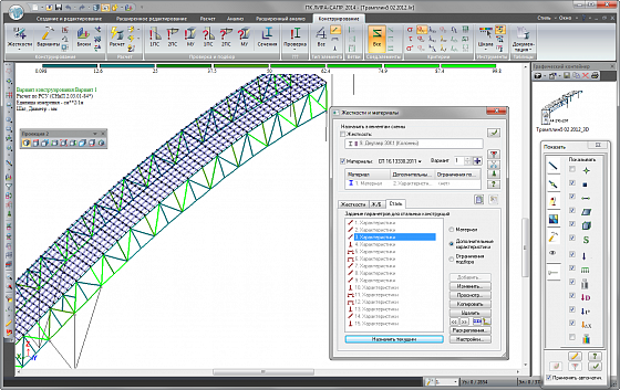 Система позволяет провести компьютерное моделирование процесса возведения конструкции, проследив последовательное изменение конструктивной схемы, установку и снятие монтажных нагрузок, введение и снятие внешних и внутренних связей.