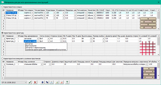 Расчет армокаменных конструкций в ПК ЛИРА-САПР реализует положения норм СП 15.13330.2012, СНиП II-22-81 и ДБН В.2.6-162.
