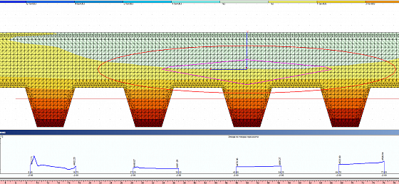 Выделение объектов кликом по шкалам результатов (перемещения, напряжение, армирование и т.д.);