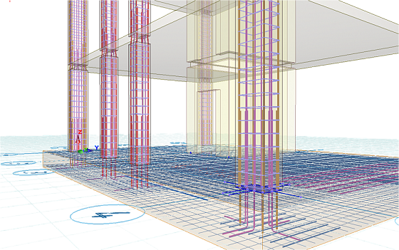 В режиме конструирования железобетонных конструкций реализован подбор площадей сечения арматуры колонн, балок, плит, диафрагм и оболочек по первому и второму предельным состояниям в соответствии с действующими в мире нормативами. По результатам расчета формируются чертежи балок и колонн, а также создаются dxf файлы чертежей.