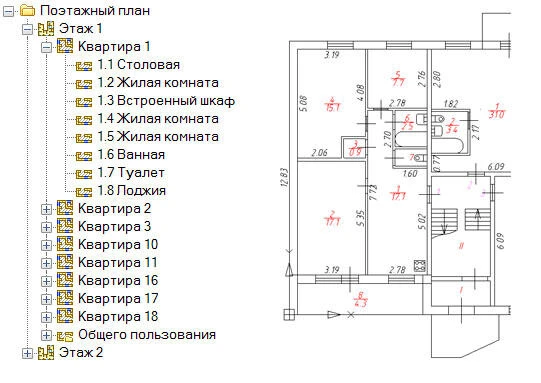 В результате пользователь получает план этажа с набором выбранных объектов.