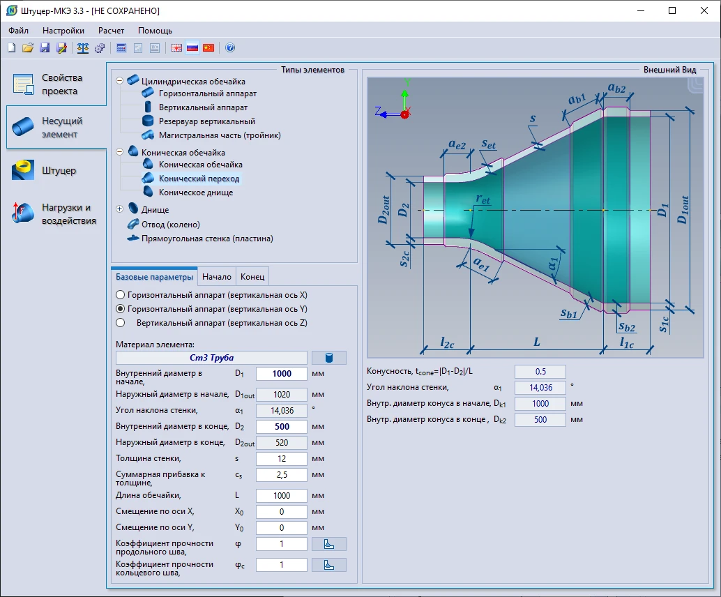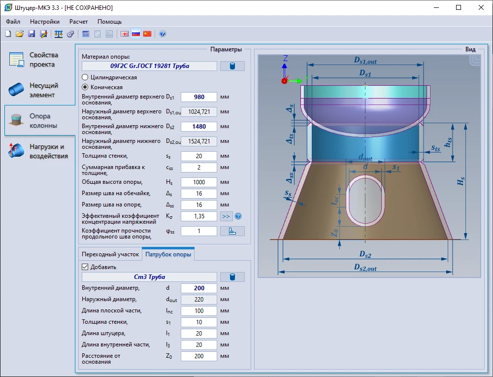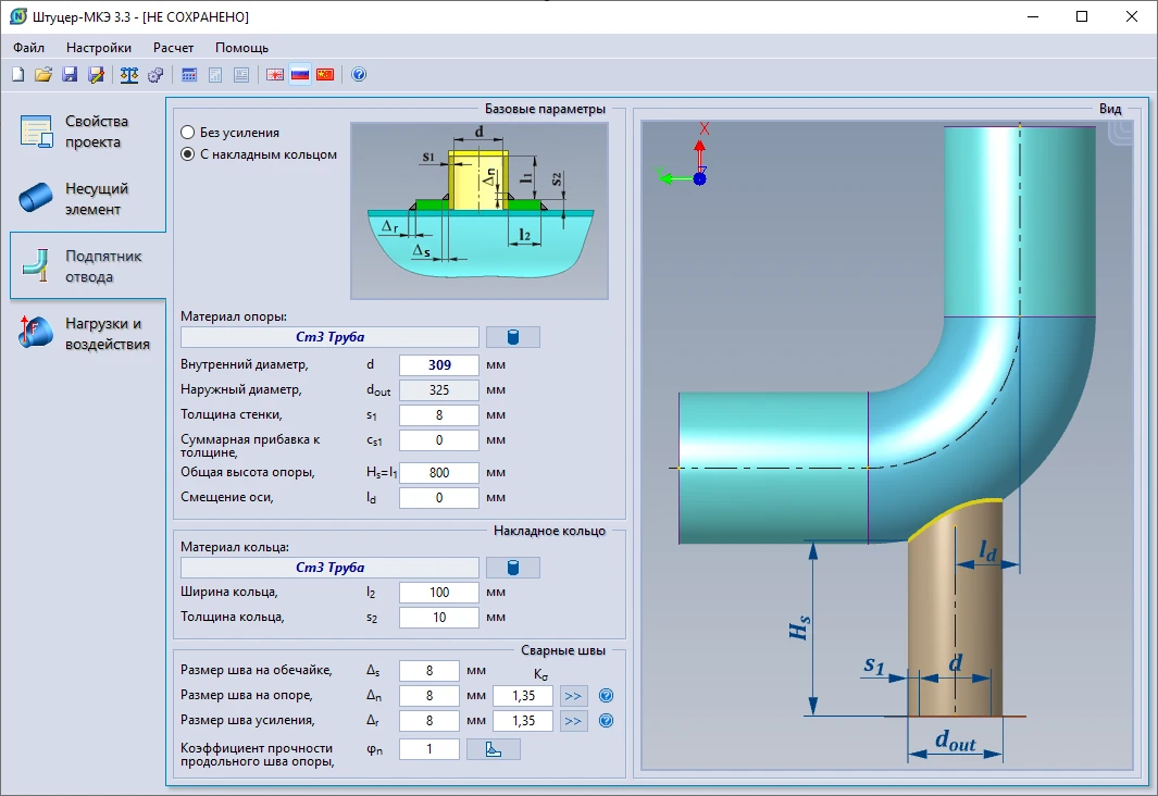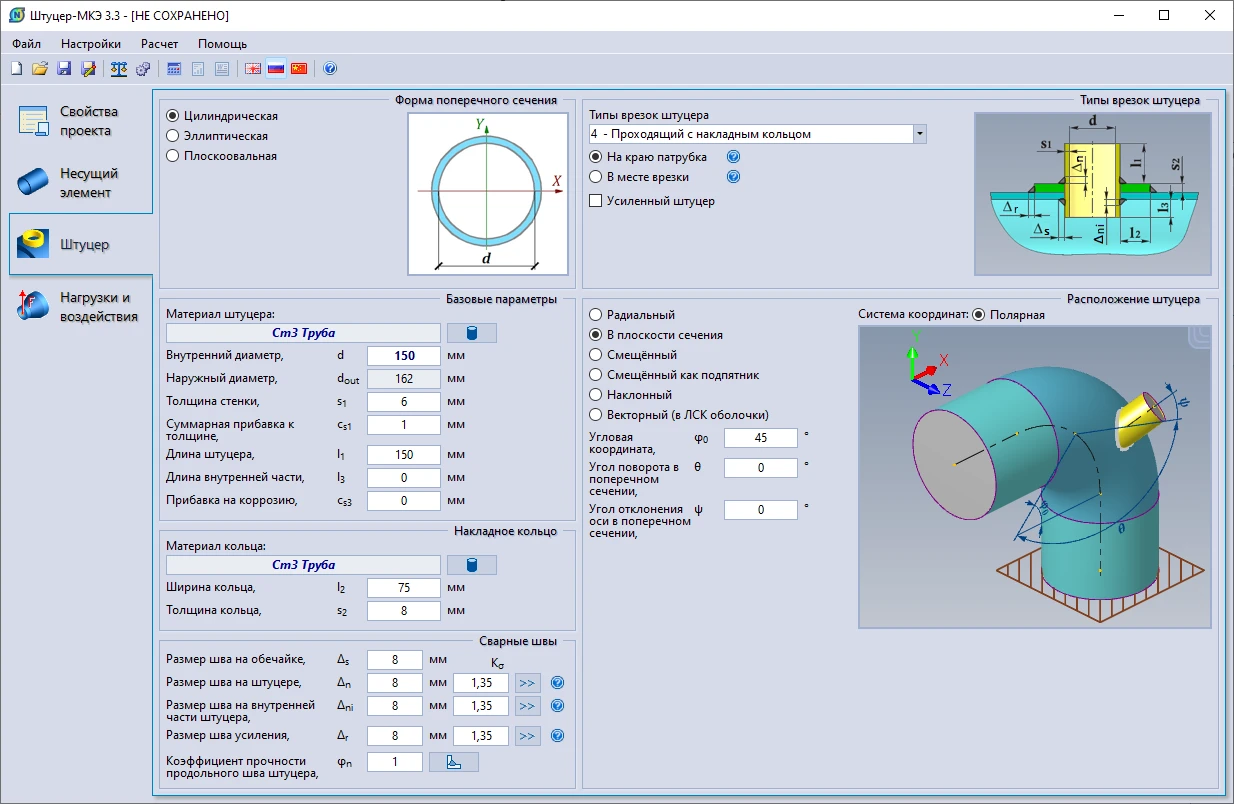 Специально для программы Старт-Проф разработан модуль «Старт-Штуцер-МКЭ» для расчета врезок (тройников и штуцеров), который вызывается непосредственно из программы «Старт».