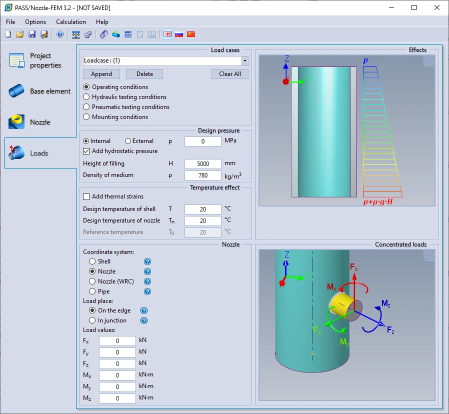 Дана возможность оценки прочности и устойчивости как элемента, в который врезается штуцер, так и расчет укрепления отверстия под действием только давления по нормативным документам ГОСТ 14249-89 и ГОСТ 24755-89, соответственно.