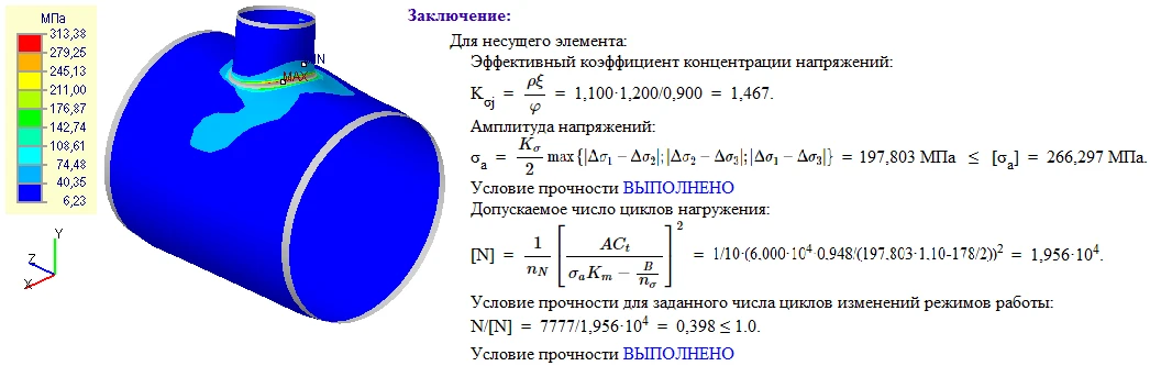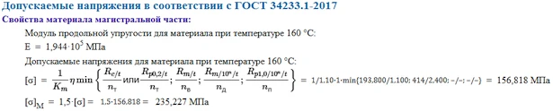 Допускаемый уровень напряжений определяется согласно «Нормам расчета на прочность оборудования и трубопроводов атомных энергетических установок». (ПНАЭ Г-7-002-86 ГОСАТОМЭНЕРГОНАДЗОР СССР 1989).