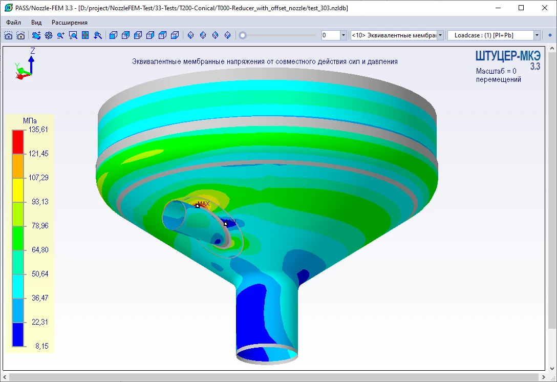 Штуцер-МКЭ - первая специализированная отечественная программа для расчета прочности и жесткости места соединения штуцера с сосудом (аппаратом) с помощью метода конечных элементов (МКЭ).